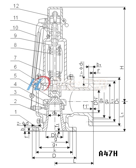 A47H帶扳手彈簧微啟式安全閥適用于工作溫度≤350℃的蒸汽、空氣等介質的設備或管路上。作為超壓保護裝置。