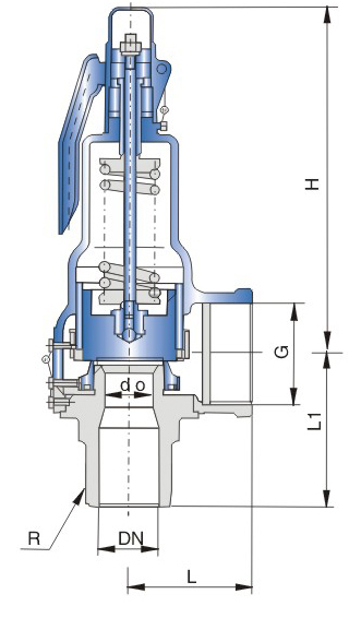 帶手柄彈簧全啟式安全閥結構尺寸圖: