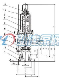 帶散熱器彈簧全啟式安全閥結構尺寸圖: