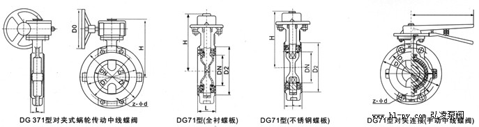 蝸輪對(duì)夾式襯氟蝶閥主要外形和連接尺寸: