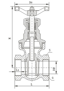 內螺紋暗桿楔式閘閥主要外形尺寸: