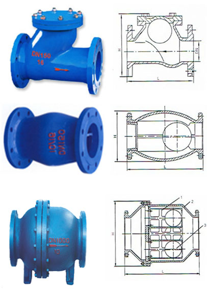 球形止回閥的閥瓣是包覆橡膠或工程塑料的球體,因此其密封性能可靠。球型止回閥根據其公稱通徑的大小,有單球和多球之分。其密封原理是:當開泵時,介質正向流動產生的介質壓力推動球體運動,沿導柱離開閥座密封面,止回閥便開啟,介質通過;當停泵時,介質反向流動的壓力推動球體沿導柱滾到閥座密封面,關閉止回閥,靠工作介質的壓力,使球體閥瓣和閥座密封面間產生一定的密封比壓,保證止回閥的密封,達到阻止介質逆流的目的。