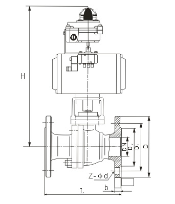 氣動球閥結(jié)構(gòu)尺寸圖: