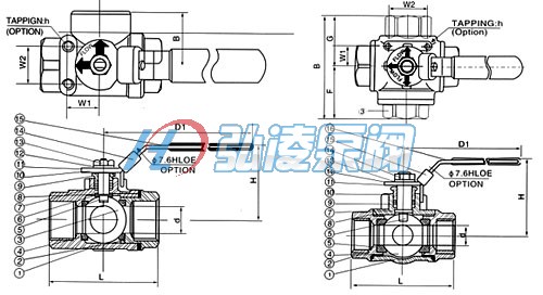 螺紋不銹鋼三通球閥產品結構示意圖: