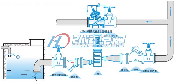 AX742X隔膜式安全持壓泄壓閥安裝示意圖: