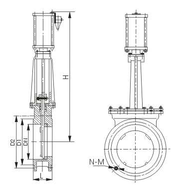 氣動刀型閘閥結(jié)構(gòu)尺寸圖: