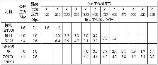 許用介質壓力與工作溫度的關系