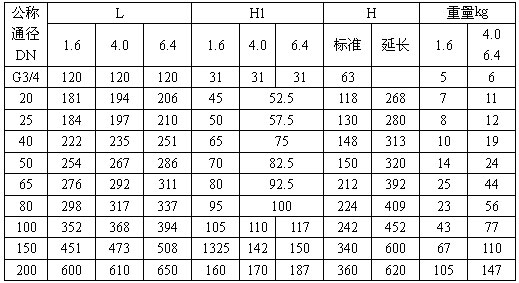 口徑范圍:DN20~300