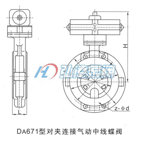 氣動襯氟蝶閥主要外形和連接尺寸: